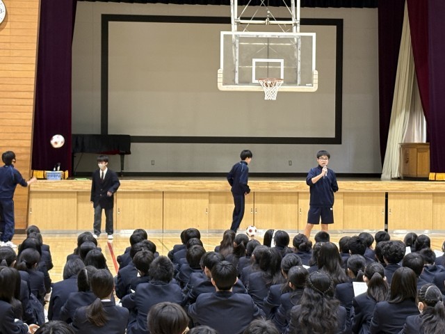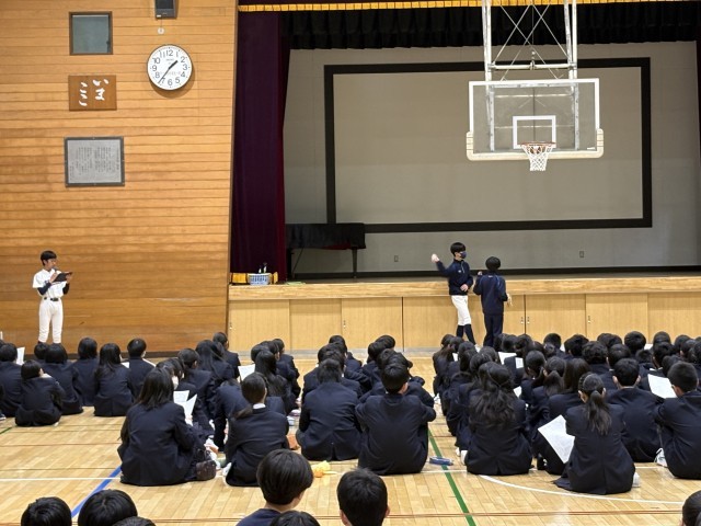 5時間目には一年生を対象にした部活動説明会が行われました。各部からの代表生徒が活動内容について説明をしました。新入生体験入部期間は4月11日から21日までになります。継続して続けられる部活動を見つけてください。