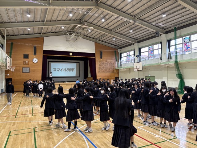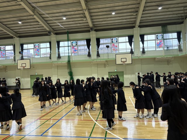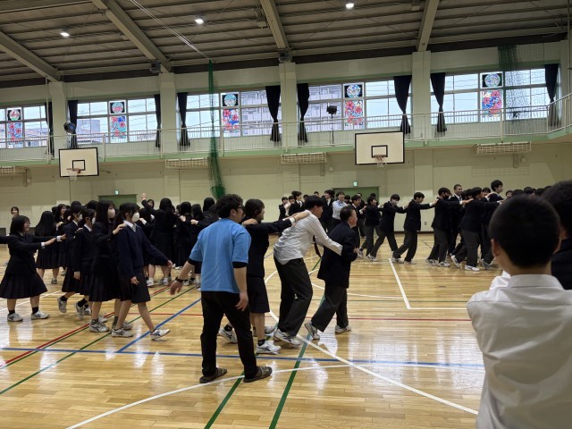 6時間目は体育館で3年生1組から7組まで、学年レクを行っています。スマイル列車やサイレントバースデーなどおおいに盛り上がっていました。