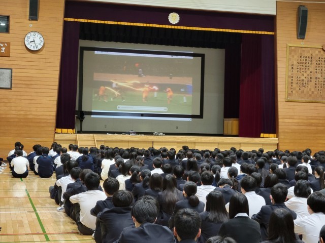 昨年度よりも、自分たちで集会を行っていくという意識が高まり、全校生徒もしっかりと目と耳で聞いていました。