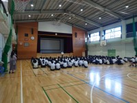 競技は、校庭でハンドボール、モルックを行い、体育館ではバレーボールを行いました。バレーボールは、サーブされたボールをレシーブではなくキャッチしてもよいという変則ルールで、少しでもゲームになるような工夫がされていました。