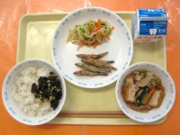 今日は、調理員さんが、新鮮な枝豆をたっぷりのお湯で茹で、一つ一つ丁寧にさやから取り出して、具と一緒にごはんに混ぜ込んで仕上げてくれました。今が旬の枝豆は優しい甘味があり、身がしまって歯ごたえが良く、美味しかった、見栄えも良かったとの声が上がりました。
