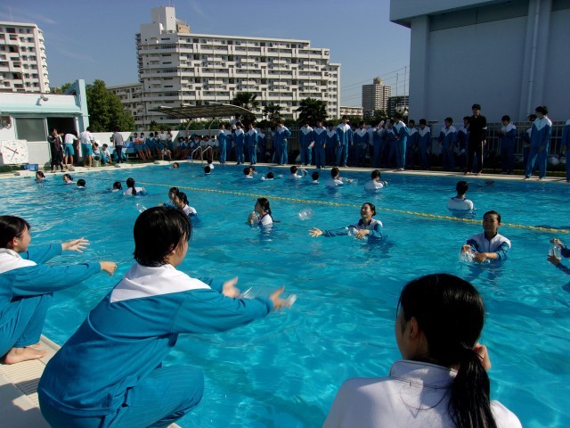 着衣での入水は重く、大変そうでしたが、バディと協力し合って行いました。