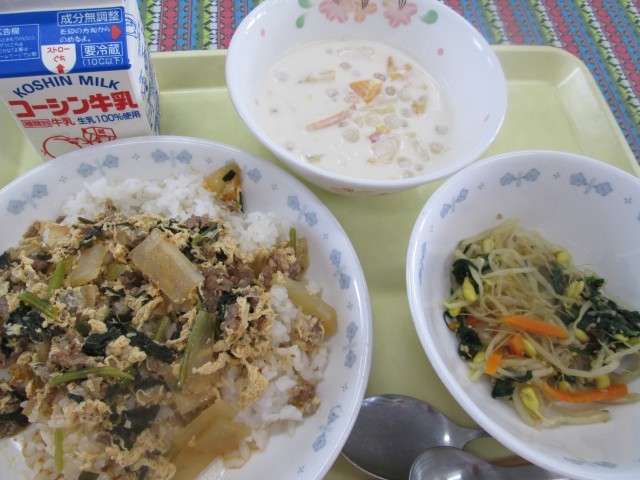 あさり入りキムチクッパ コンナムル フルーツタピオカココナッツ 牛乳