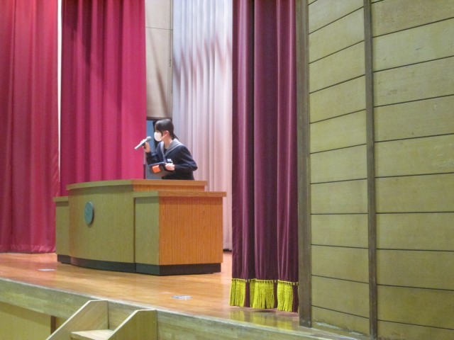 生徒会長、専門委員長より報告がありました。学校を良い環境にしていくために日々活動に励んでいます。