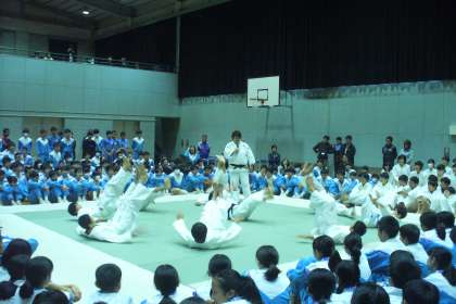 11月15日(水)3・4校時に「オリンピアンに学ぼう!」が本校体育館で開催されました。講師は2012年ロンドンオリンピック柔道女子78kg超級銀メダリストの杉本美香先生でした。時間を忘れて、杉本先生の話・模範演技・実技体験に引き込まれていきました。仲間、、笑顔、夢を持ち努力すること、失敗を恐れずにチャレンジすること、人に興味を持つこと(思いやりをもつこと)、最後は自分で決めることの大切さを強調されていました。