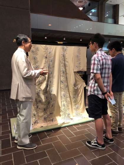 【写真中】日本染織展では、作家の方から直接解説していただきました。