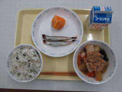 使ったあっさりした煮物です。そこへ、コクのある肉みそをかけ
