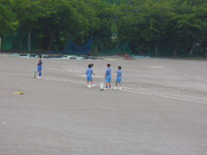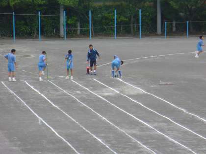 明日の運動会実施ができるだけスムーズにいくように、サッカー部が部活後ラインを引いてくれています。