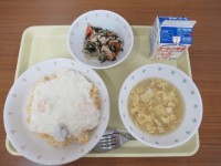 オムレツは、16世紀フランスでオムレットと呼ばれていました。日本に伝わった際に訛って、オムレツと呼ばれるようになったといわれています。オムレットはフランス語で「剣」を意味し、ギリシャ語が由来といわれています。オムレツの形状が剣に似ているところからその名がついたようです。卵だけのプレーンオムレツ、チーズの入ったオムレツ、トマトの入ったオムレツなど使う具材によって、いろいろなオムレツが作れます。給食では、じゃがいもの入ったポテトオムレツにしました。