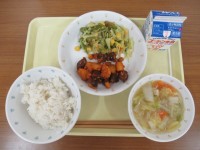 じょうろの水で書いた「おはよう!今日も笑顔(ニッコリマーク)」で生徒を迎えました。