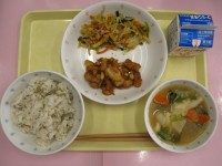 4月14日 ごはん おかかふりかけ ししゃものごま焼き 肉じゃが ちぐさ和え 牛乳