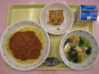 5月2日 中華ちまき 牛乳 ししゃもの中華ごま焼き 3色野菜のピリ辛和え フルーツ杏仁