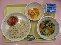 ツナのアラビアータ 牛乳 ポテトチップサラダ フルーツポンチ