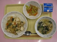 ごはん 白菜の浅漬け 牛乳 鰆のゆずみそ焼き 大豆とかぼちゃの揚げ煮 あんかけ汁