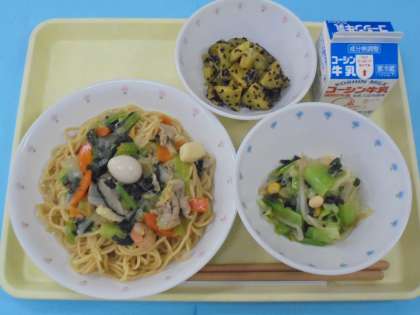 今日は「東京スマイル農業協同組合」から無償で提供された小松菜を使った、あんかけ焼きそばと中華サラダを提供しました。