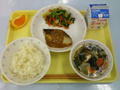 菜の花などのアブラナ科の花のつぼみや花茎、若葉は総じて「なばな」といい、世界中に300種類もあると言われており、春が旬の野菜です。今日は、少し早い春を告げる菜の花を他の野菜とおかかで和えた「菜の花の和え物」を提供しました。