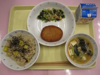 豆腐とえびのうま煮丼 牛乳 中華はるさめスープ いちご杏仁
