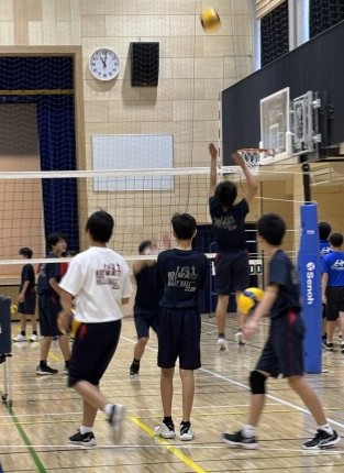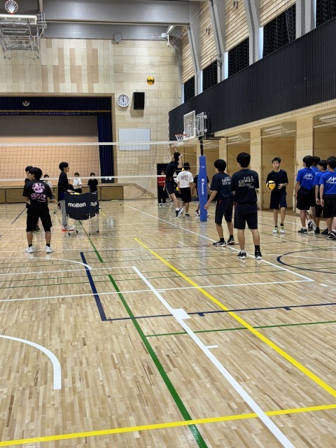 男子バレー部の試合前の練習風景です。試合の取材に行ったのですが、とても上手になっていて見惚れてしまい、写真を撮るのをすっかり忘れてしまいました。次の機会に試合の紹介をします。