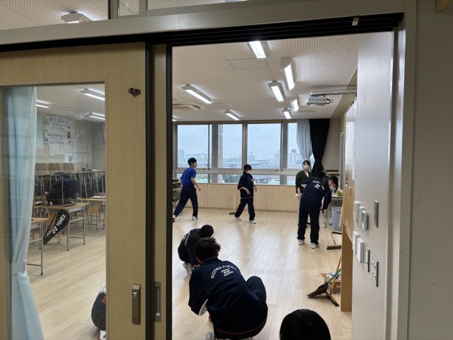 2025年もあと数日を残すのみとなりました。今日は新校舎になってはじめての大掃除でした。まだ汚れを感じられないきれいな校舎ですが、教室内や廊下は生活の中で少しずつホコリが溜まってきていたのですね。クラスで手分けをして掃除を始めると、あっという間に雑巾が汚れ、掃除された教室は一段と明るく感じました。きれいになった教室で明日の終業式を迎えられる事は嬉しいかぎりです。一生懸命掃除をしてくれた皆さんお疲れ様でした!