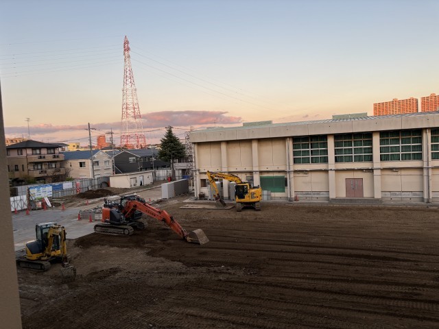 2025年が終わろうとしています。新校舎に引っ越し、新しい生活にもずいぶん慣れて来ました。12月半ばより、いよいよ伝統ある体育館の解体が始まりました。2026年早々に一中の校庭に生まれ変わります。後半年程で全ての工事が終わるようです。体育館のモザイク壁画も大きな屋根も無くなってしまいますが、今度は校庭として新しく歴史を刻んでいく事でしょう。素敵な一中にしていきたいです‥。