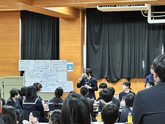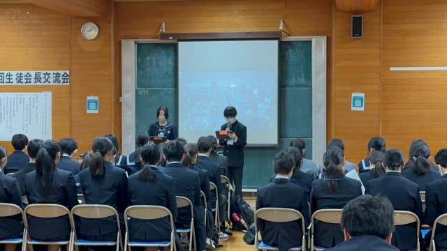 生徒会長交流会では「服の力プロジェクト」の発表を代表で行いました。この取組は今年、はじめての生徒会行事だったので、来年再来年と続くといいなあ‥と思っています。江戸川区からSDGsカルタをいただきこれから全校生徒に紹介したいと思います。
