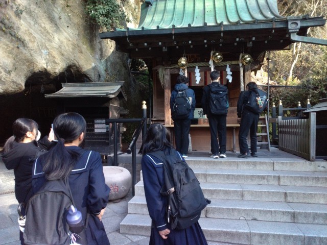 銭洗弁財天宇賀福神社での班行動の様子です。
