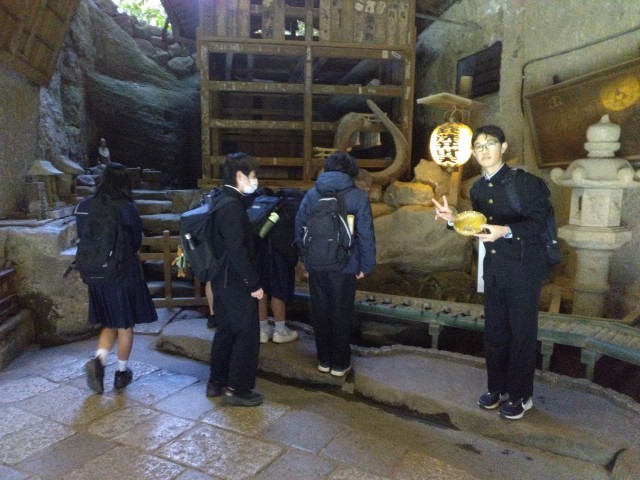 銭洗弁財天宇賀福神社での班行動の様子です。