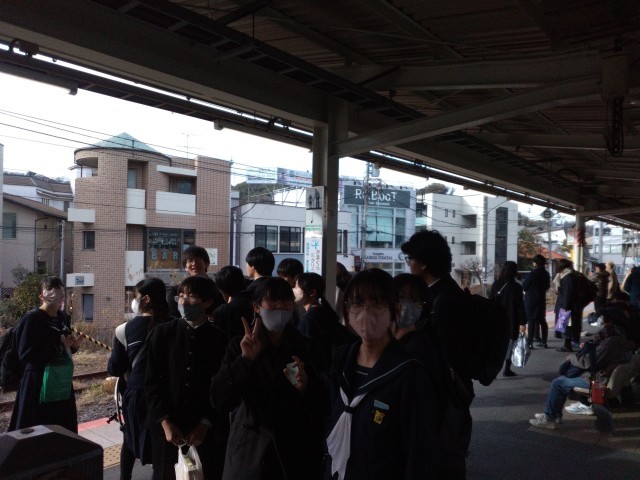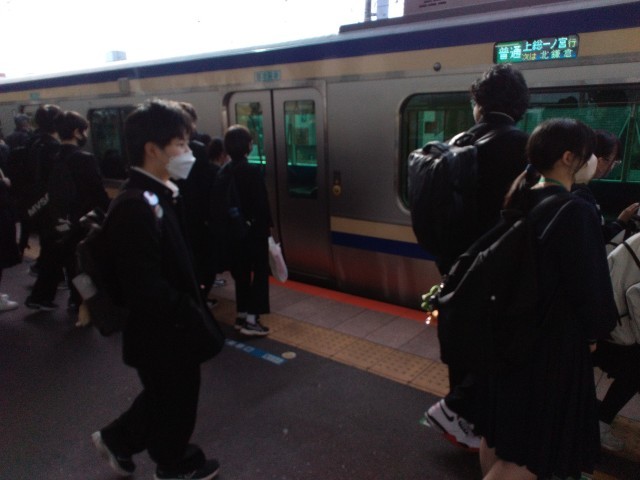 鎌倉駅のホームで電車が待っています。電車に乗りました。