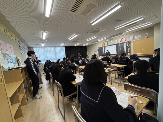 2年生の道徳授業です。各クラスとも学年の先生の授業なのでとてもリラックスして受けています。授業は担任の先生とは限りません。今日はそれぞれ担任ではない先生に教わっていました。一生懸命自分の意見を発表してくれたり、周りの友達と話し合ったり。素敵な大人になる準備ですね。1組の題材は心のアンテナでした。みんなそれぞれの素敵なアンテナがたてられるように…と言う先生の願いが伝わってくるような授業でした。