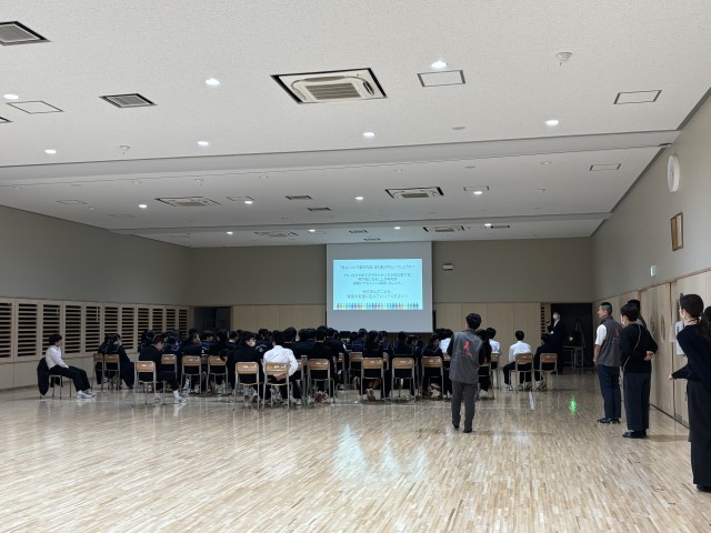 3年生の特別授業として、今日は健康教育講演会が行われました。エイズピアエデュケーションの方々に来ていただき、生徒だけで話し合ったりする場面がありました。学年の先生たちは後ろからそっと見守る…