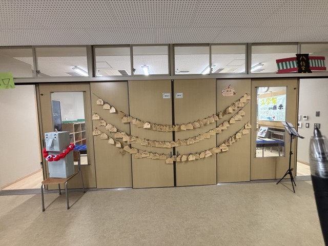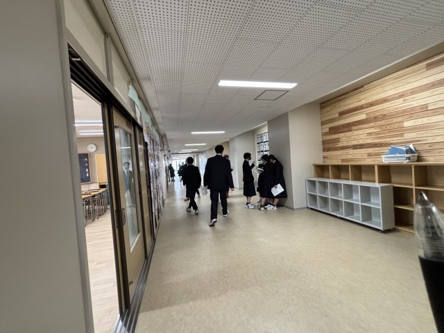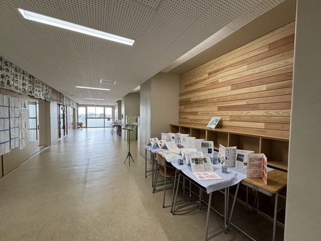 昨年のプレハブ校舎と違い、廊下が広くなり、教室も広くなり、とても見やすくたくさん作品が飾れました。全学年時間を区切り一斉の見学なので、まるで美術館に来てるようでした。友達の作品をじっくり見学することができました。