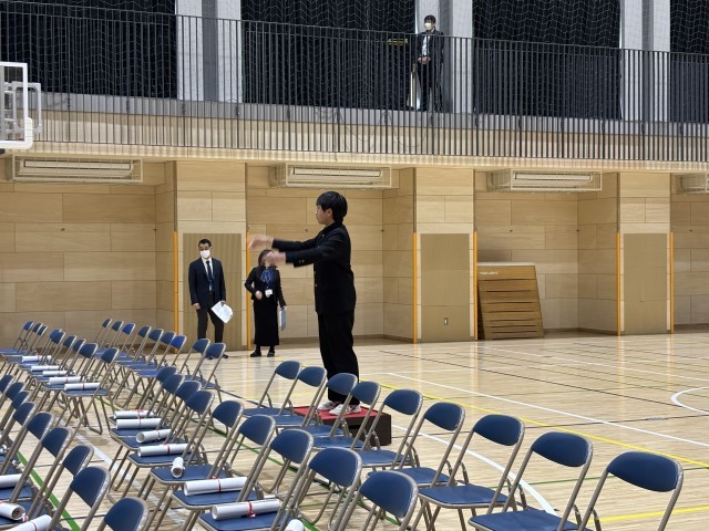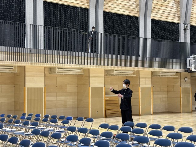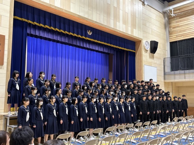 3年生合唱、全校合唱の様子です。本番さながらしっかり歌っていました。指揮者も伴奏者も堂々と立派でした。