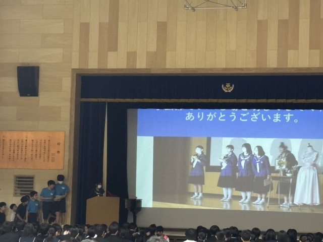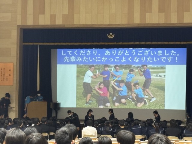 本校の3年生を送る会は70年以上続いているそうです。今年は学校評議員の方々にも見ていただきました。