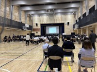 4月13日(金)、1年生はこれからの学校生活の準備として、体育での集団行動や校歌の練習を行いました。1時間目は運動会での全体行動も見据えて、テキパキと整列する練習やランニングをしました。2時間目は今日の離任式でも歌う校歌の練習を、クラス対抗なども取り入れて行いました。来週からは、教科の授業が始まります。