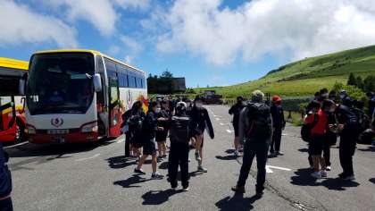 車山肩駐車場にほぼ予定通りに到着しました。雨が上がり、とても良い天気です。熱中症に注意していきます。風もあり、爽やかです。