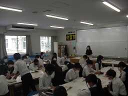 家庭科、理科、英語の授業(ALTの活用)のようすです