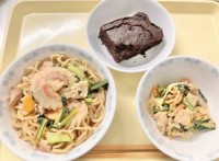 ◯牛乳◯白湯塩うどん◯大豆とさつまいもの揚げがらめ◯キャロットゼリー白湯塩うどん...