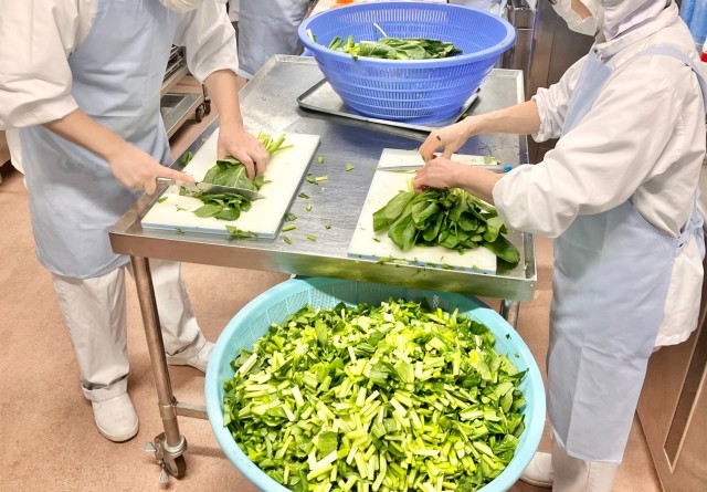 昨年度まではレバーの臭み抜きに牛乳を使用していましたが、今年度は乳アレルギーの対応があるため、酒と味噌で臭みをとっています。