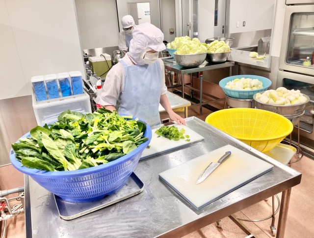 手作りジャムのトーストは780枚のパンに1枚1枚塗りつける作業が時間がかかるので、朝一番に加熱して仕上げます。給食室はシナモンの良い香りでいっぱいです。