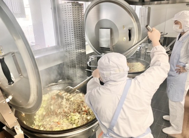 家庭での炒め物と異なり、野菜を何十キロも使う給食の炒め物は火が通りにくくて水分が出やすいので炒めるのが難しくなります。うまく炒めると野菜の旨みが出るので調味料が少なくて済みます。