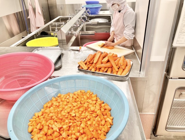 シチューの日は野菜を多く使います。サラダよりもシチューなどの煮込み料理の方がみなさんが野菜をたくさん食べてくれるような感じがするのでつい多くしてしまうのです。