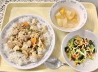張り切っているけど疲れてくるであろう給食2日目は揚げパンです。1年生はパンの大きさが大きくてびっくりするかもしれませんね。中学生は人生で2番目に体重あたりの成長量が多い時期です。しっかり食べて勉強や運動に励みましょう。春雨サラダは「新1年生に食べさせたい&新2・3年生が食べたい給食」で上位5票以上を獲得したメニューです。さて、1階の食育掲示版は見ていただけましたか?季節や学校行事に合わせて、1・2ヶ月に内容を変えていますのでぜひ見てみてくださいね。4月は給食・食育の目標をメインに掲示しました。給食は「ただのお昼ごはん」ではなくみなさんの健康を守る「生きた教材」として運用されるよう、文部科学省によって7つの目標が示されています。①健康の保持増進 ② 食事について正しい理解・健全な食生活を育む判断力・望ましい食習慣 ③ 明るい社会性と協同の精神 ④ 生命、自然を尊重する精神や環境の保全に寄与する態度 ⑤ 食生活が多くの人々の勤労に支えられていることへの理解と感謝 ⑥ 伝統的な食文化への理解 ⑦ 食料の生産、流通及び消費についての理解・・・毎日、この目標の1つ以上は達成できるように献立を組んでいます。少し意識してみてくださいね。