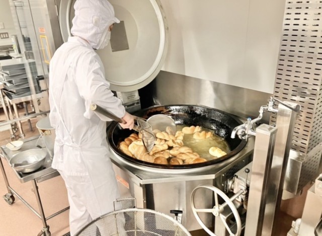 揚げパンはじっくり油を染み込ませる揚げ方とさっとカラッと揚げる揚げ方があります。こまちゅうは後者の揚げ方であっさりと食べやすく胃に優しい仕上がりです。
