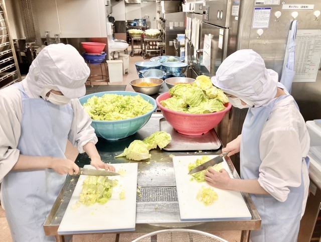 豆乳ミネストローネの春キャベツは大きめに切って煮込みすぎないことで甘さを楽しめるようにしてあります。