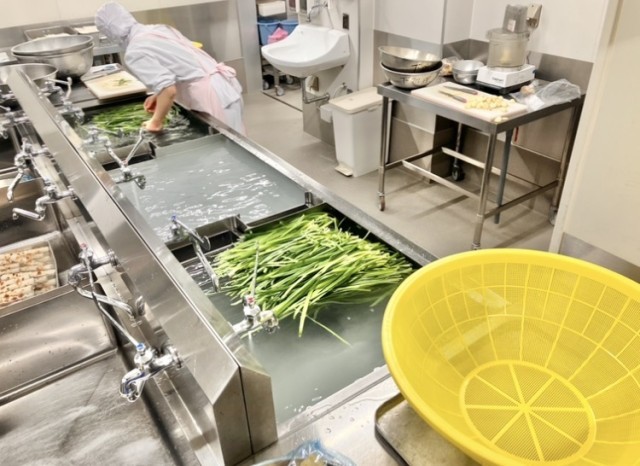 野菜は全て3回水を替えて洗っています。洗浄水には消毒薬などは入れず、真水です。洗いながら、土や泥、虫などがついていないか、傷んでいる部分はないかよく確認します。