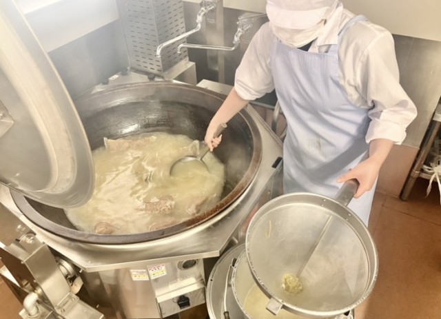 ラーメンのだしで特にこだわっているのは鶏の骨のだしです。普段は野菜の外葉や芯もたくさん使いますが、ラーメンの時は青ネギと少量のにんじんだけにして、ラーメンらしいスープになるようにしています。