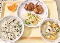 運動会練習いよいよ本格始動☆給食室からもエールの気持ちを込めて、疲れていて食べやすい&疲労回復&筋肉量アップのメニューをお送りします!初日はピリ辛でスプーンでパクパク食べられるキムチ炒飯と、体中に酸素を送る働きがある赤血球の元の鉄分たっぷり、レバーをメインにしました。レバーは辛味が残らないように煮詰めたニンニクとネギをベースにした特製のスタミナだれで絡めています。運動会練習、頑張ってください!