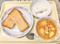 ◯牛乳◯いちごジャムサンドイッチ&ツナマヨサンドイッチ◯ミネストローネ◯牛乳寒天...