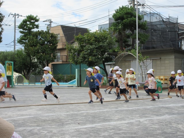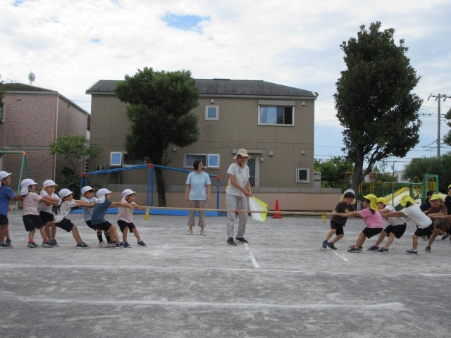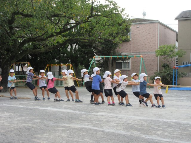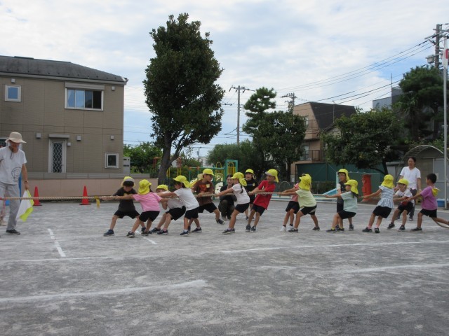 星の組はつなひきをしました。黄色チームと白チームに分かれて対戦します。