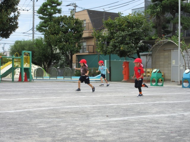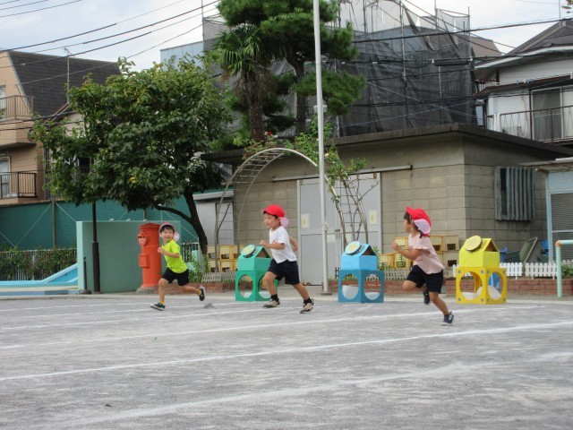 よーい ピー!の合図で。ばら組はかけっこを楽しんでいます。